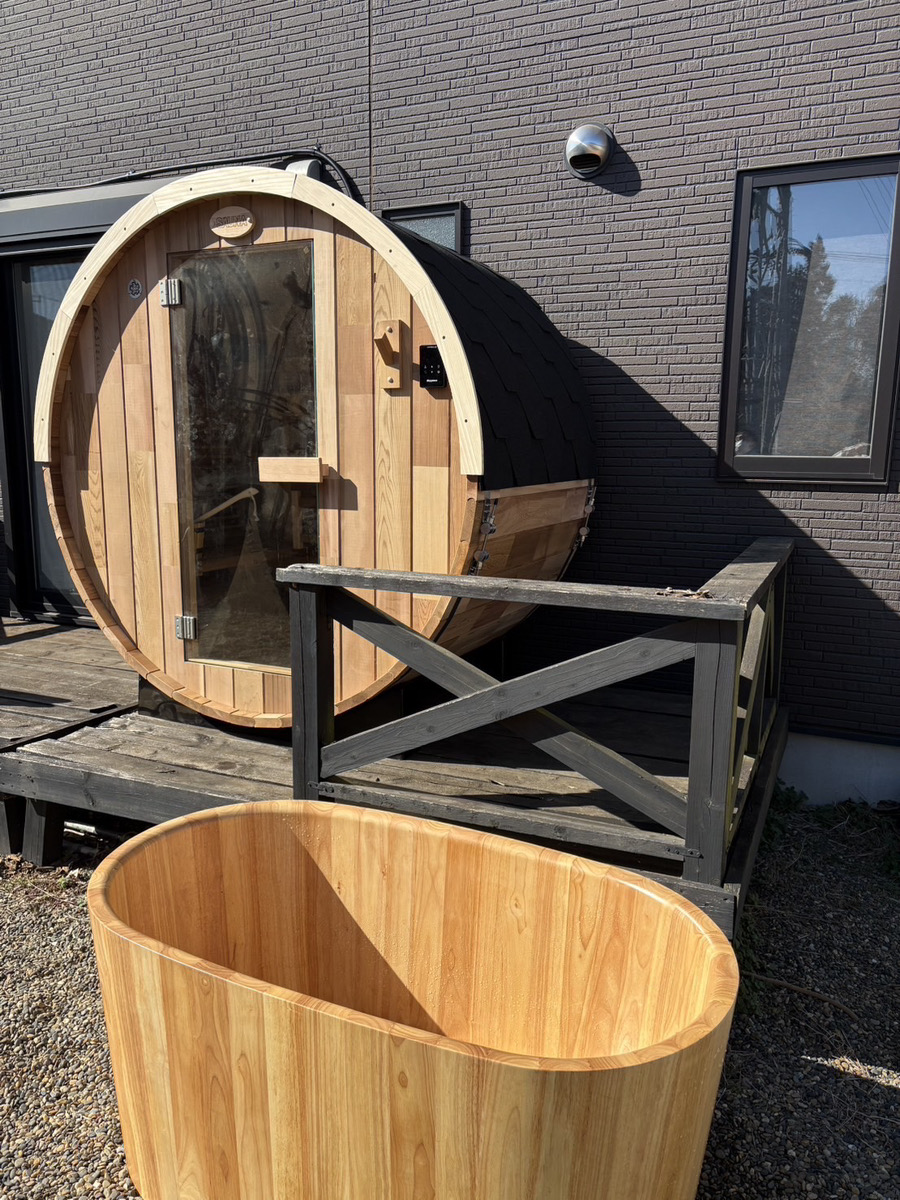 円形の形をしていることで、バレルサウナ内の温度も高めやすくロウリュウをする際に最適な形とされ人気のサウナです。